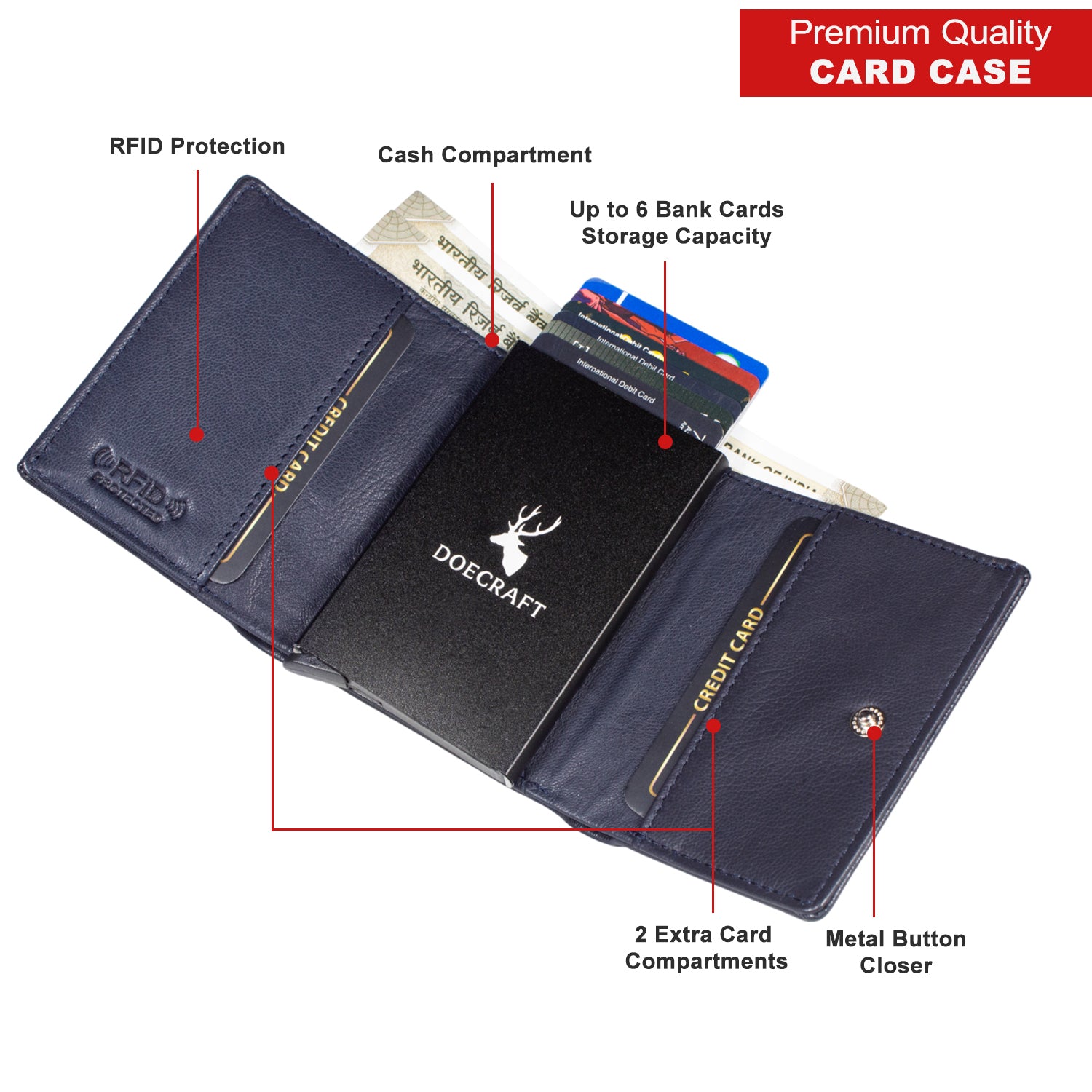 DOECRAFT Men Casual, Formal Blue Genuine Leather Wallet (8 Card Slots)