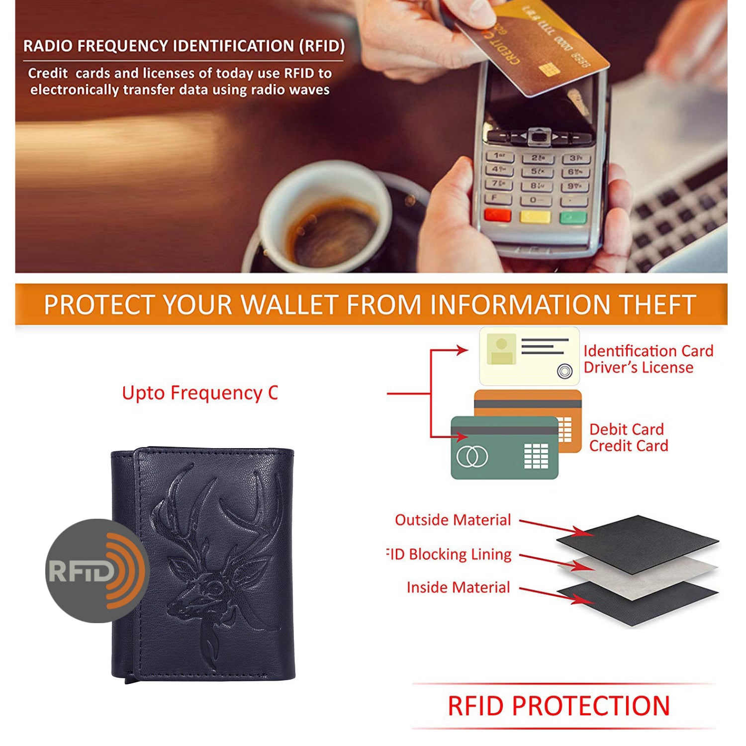 Blocks 13.56 MHz or higher RFID signals, safeguarding sensitive card information from unauthorized scans.