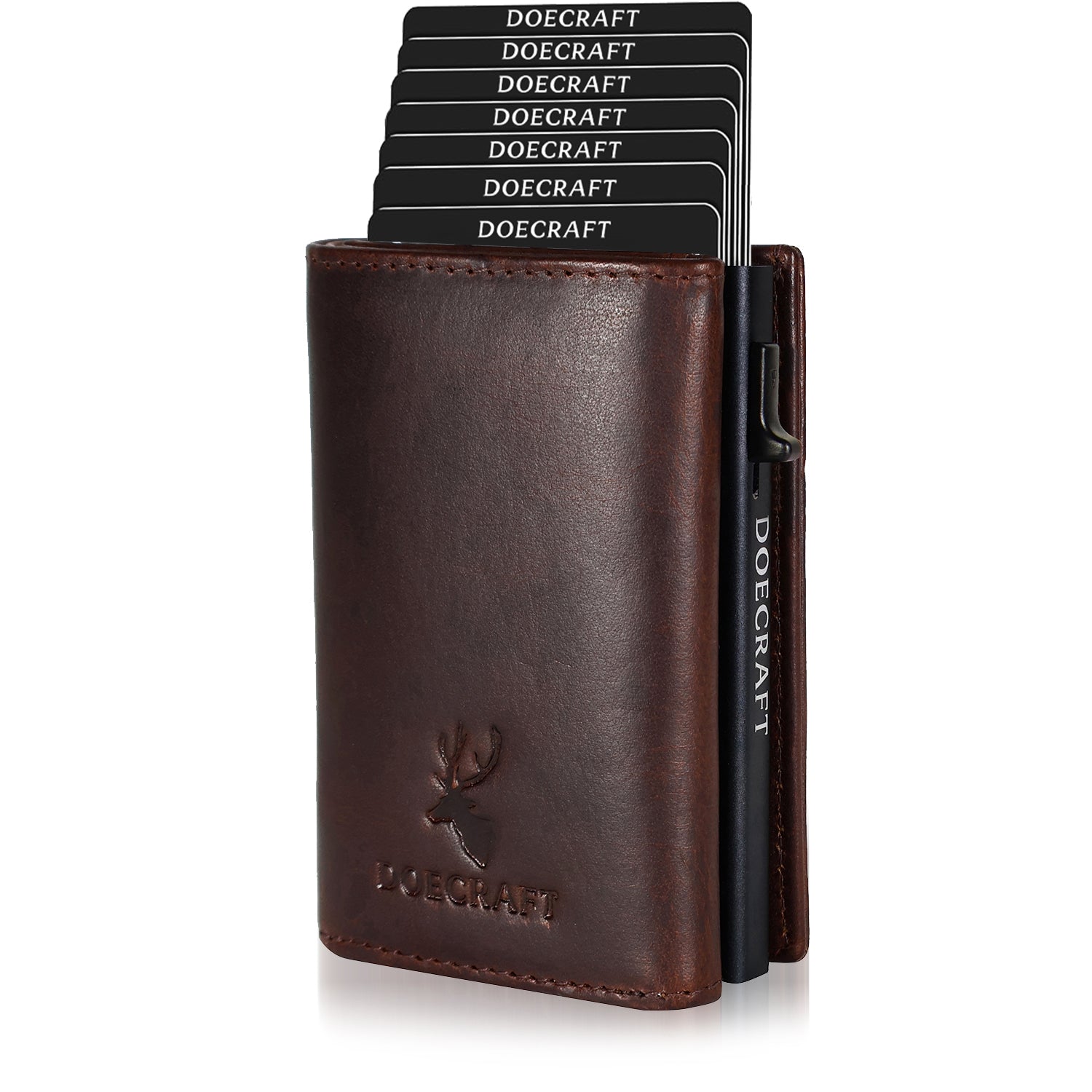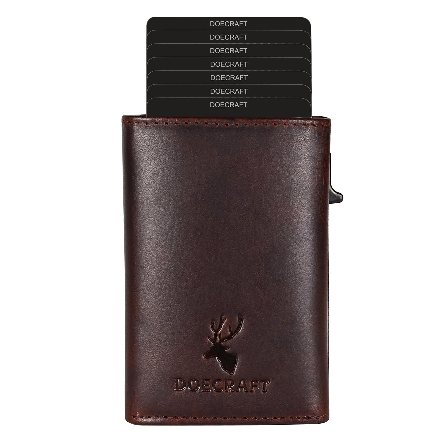 Upgrade your everyday carry with the DOECRAFT genuine leather wallet featuring a sleek aluminium card-case and 10 easy-access card slots. Crafted from top-grain leather, this wallet blends durability & refined style with modern utility.