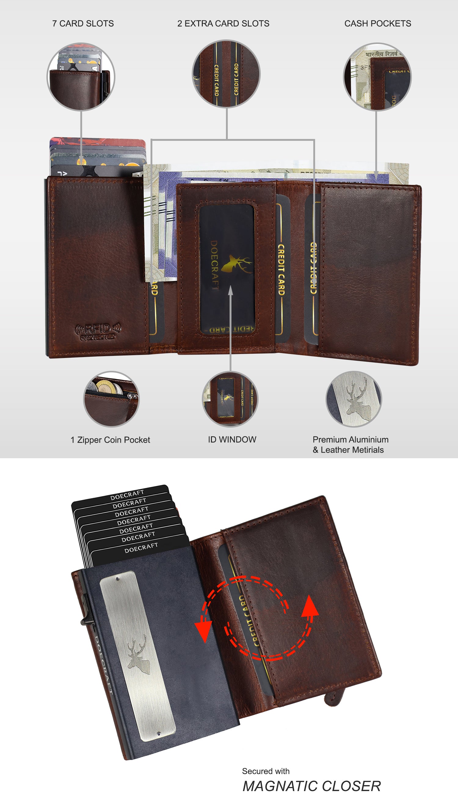 DOECRAFT Genuine Leather & Aluminium Wallet – 10 Card Slots