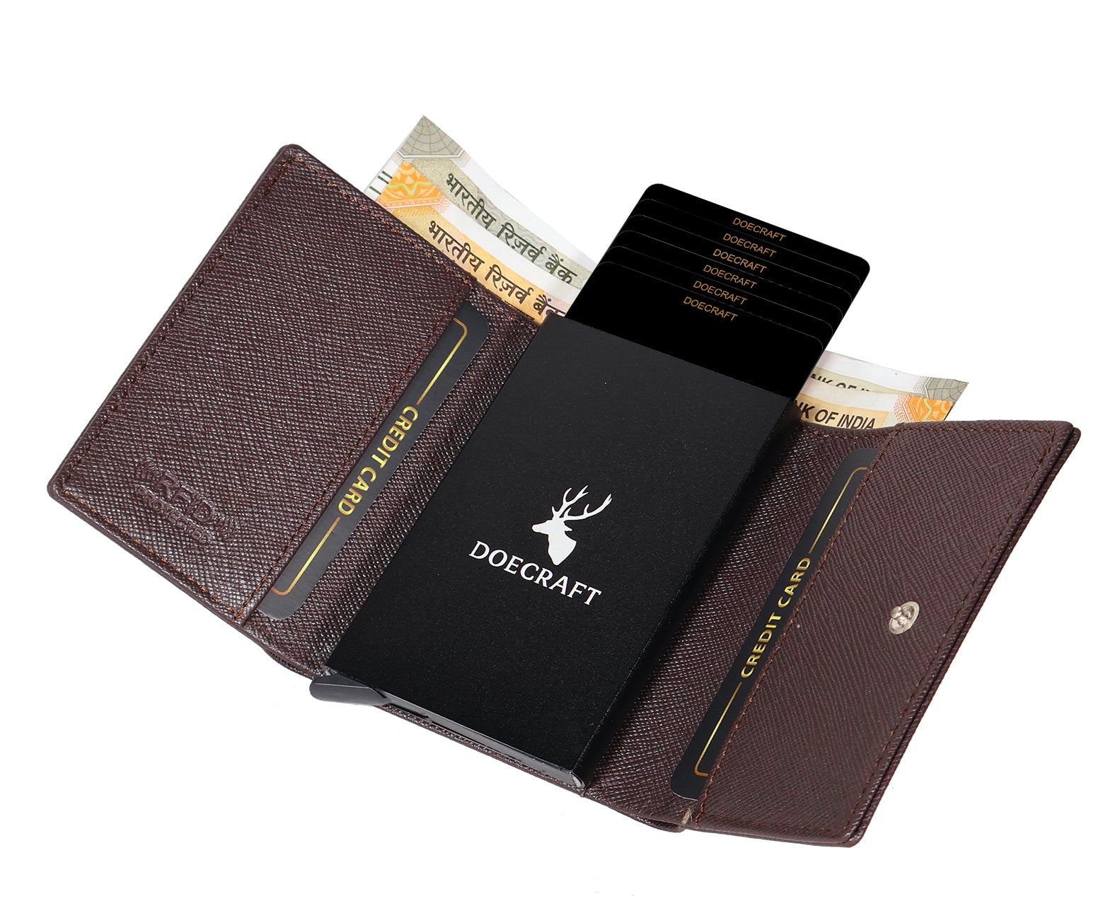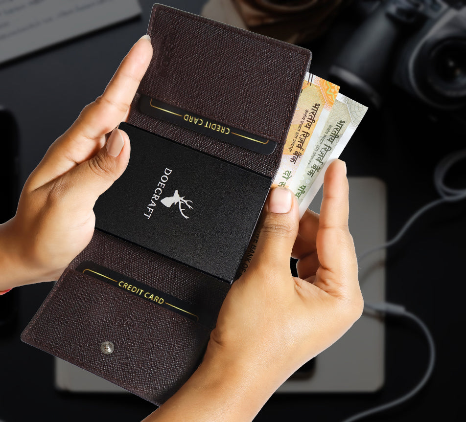 DOECRAFT Men Casual, Formal Brown, Black Genuine Leather Wallet (8 Card Slots)