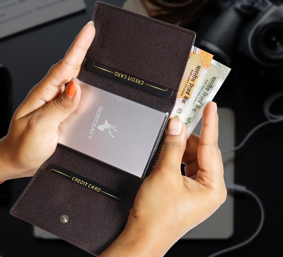 Elevate your everyday essentials with this sleek and sophisticated wallet, crafted from premium top-grain leather for a luxurious look and feel. Designed for both style and functionality, it features 8 card slots and a unique silver metal card case with an embossed Deer 3D print, combining elegance with durability.