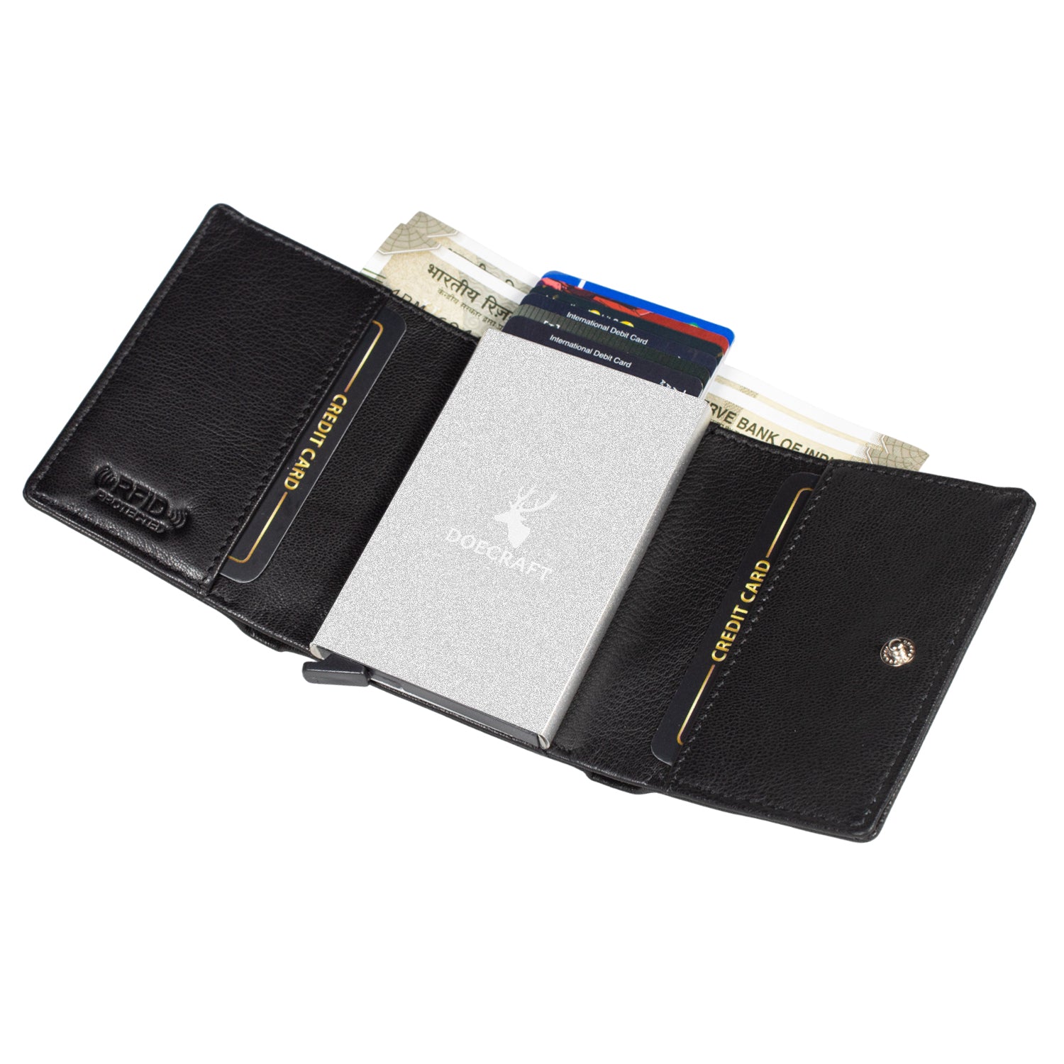 DOECRAFT Men Casual, Formal Black Genuine Leather Wallet (8 Card Slots)