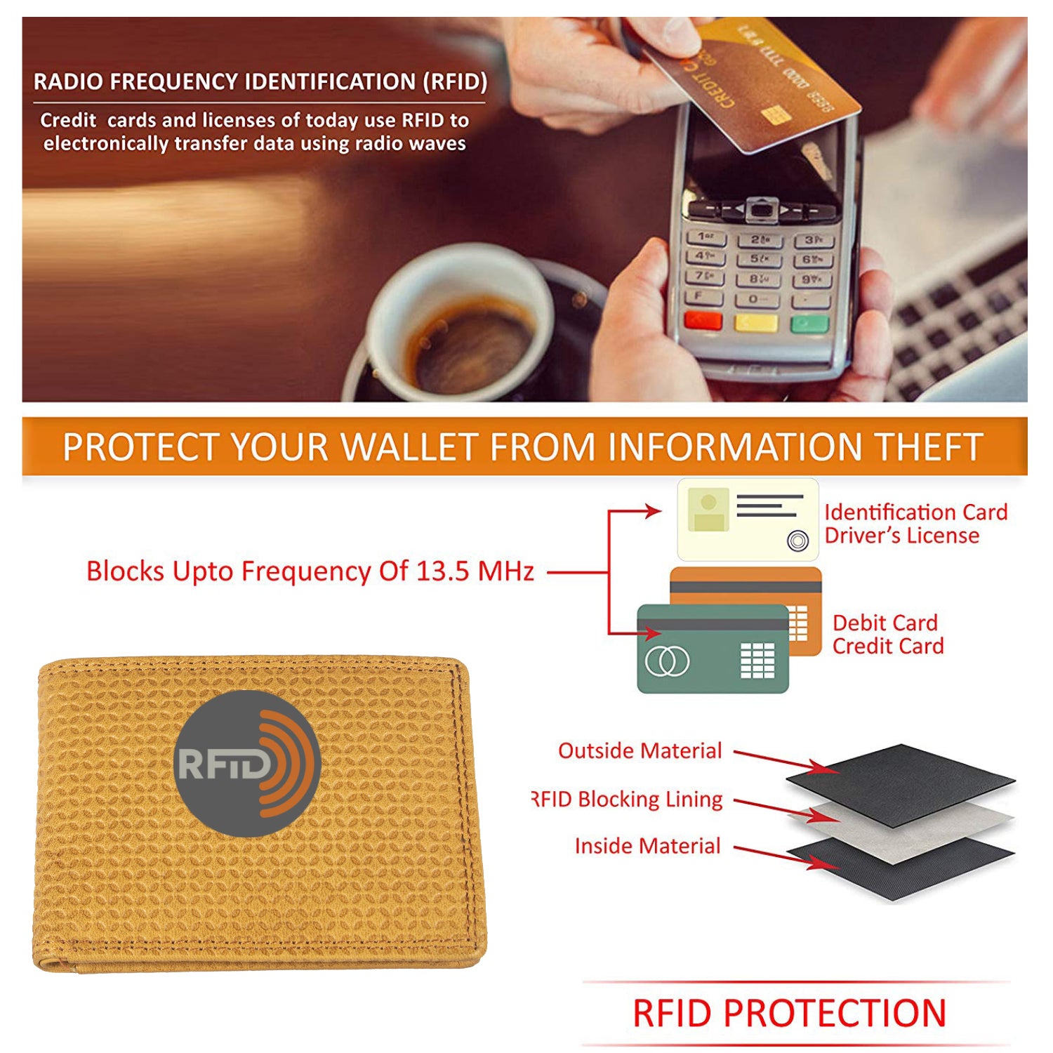 • RFID-blocking technology to guard against electronic theft